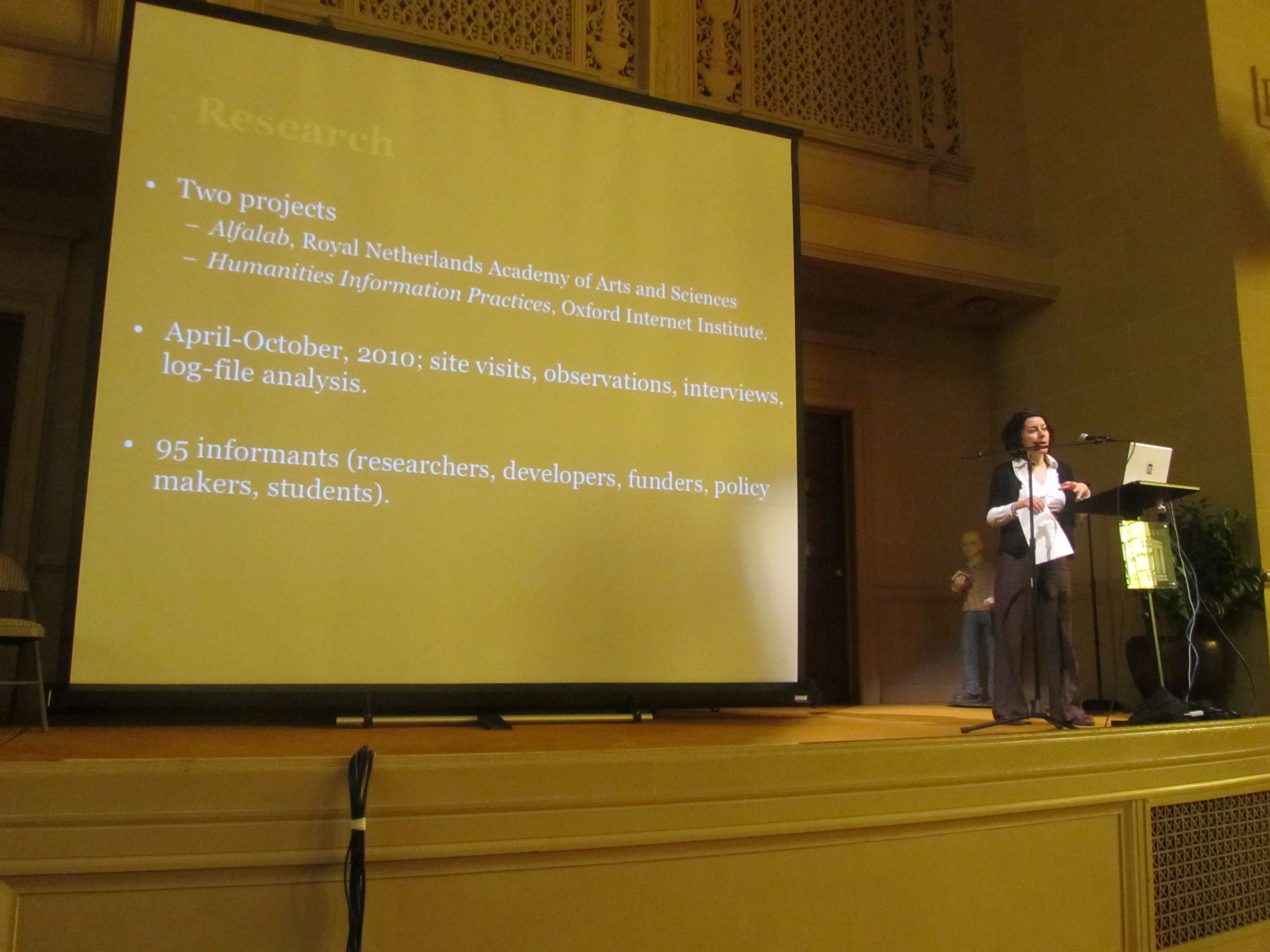 Academic personal digital archiving was the main theme of presentations by Sudheendra Hangal from Stanford University, Carly Strasser from California Digital Library and Christopher Lee from the University of North Carolina, as well as of the panel What’s being Lost, What’s being Saved: Practices in digital scholarship and personal archiving. This panel included talks by University of Minnesota’s Laura Gurak and John Butler, as well as Penn State’s Ellysa Stern Cahoy and my previously mentioned talk.